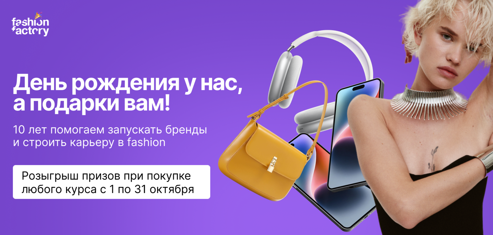 | Fashion Factory отмечает 10 лет! | | | | Начинали в 2013 году с одного курса для талантливых дизайнеров. Сегодня в команде Fashion Factory уже 50+ человек, 30+ программ обучения и более 10 000 выпускников.