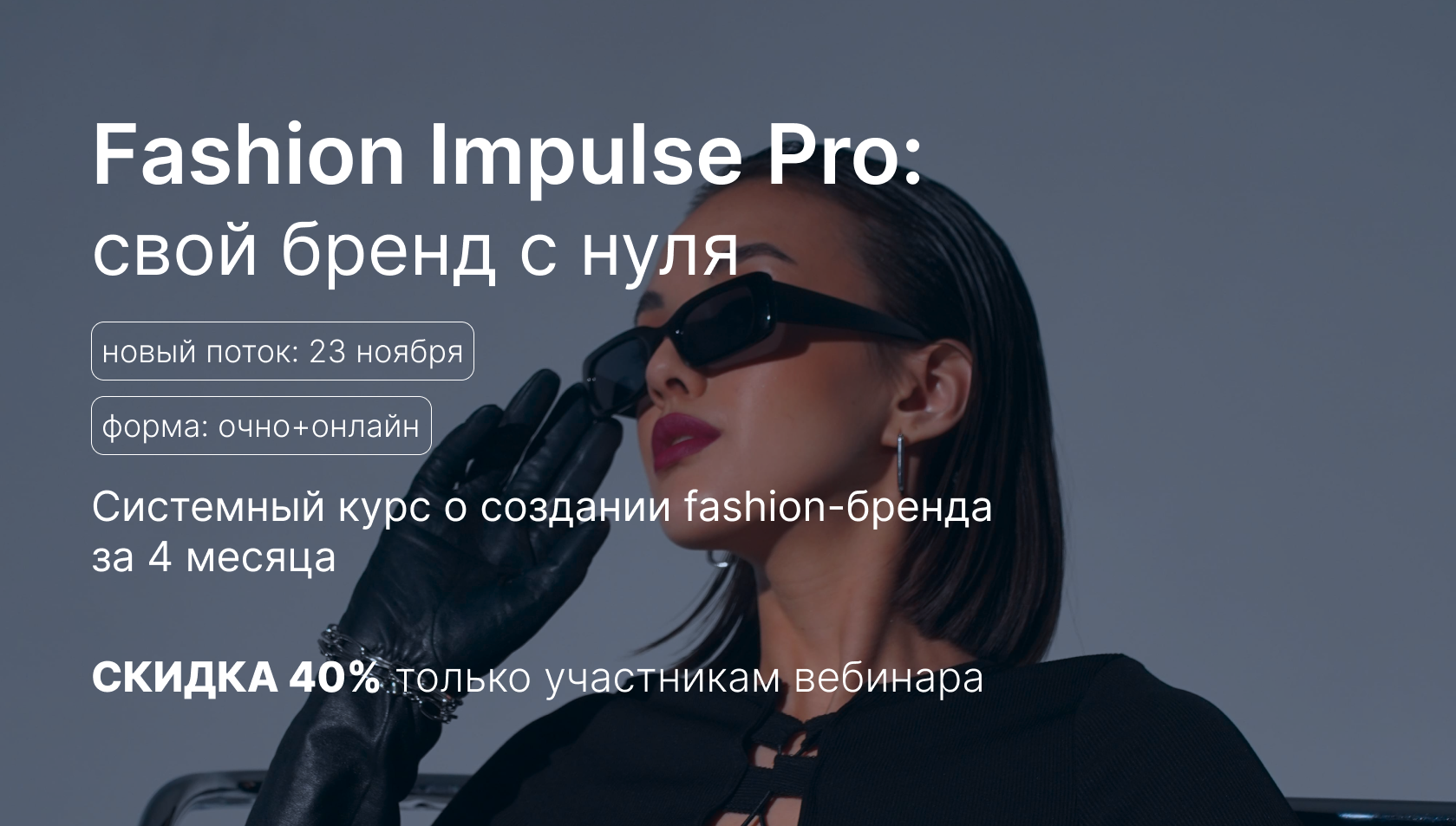 До 25 октября успейте попасть на предстоящий поток курса по созданию собственного бренда Fashion Impulse — и обучайтесь со скидкой 40%.*