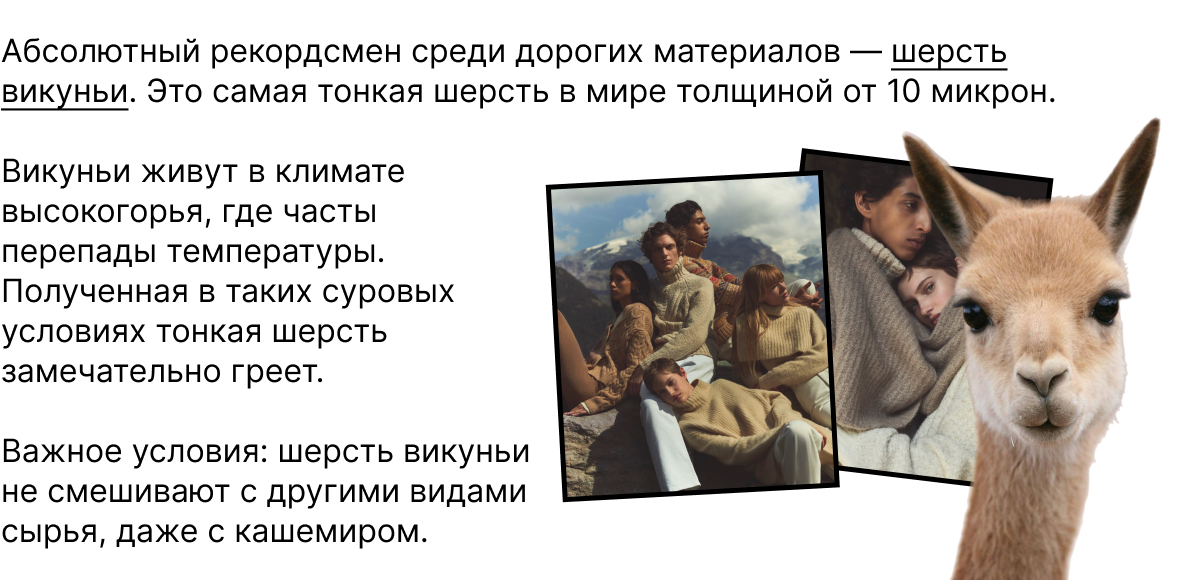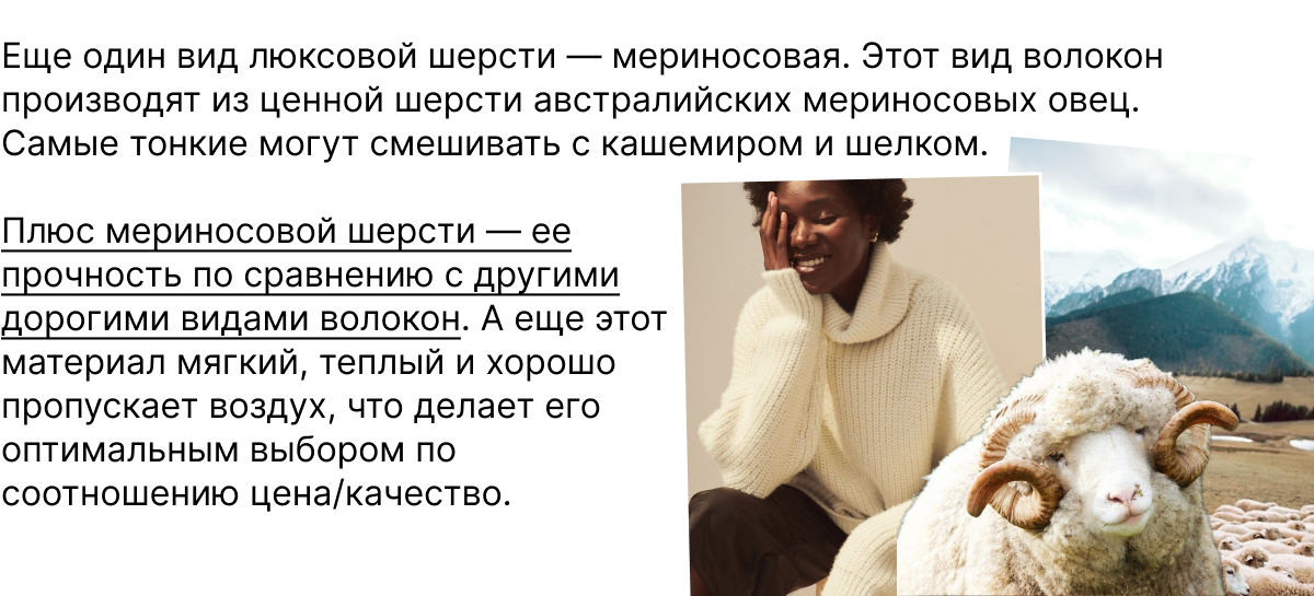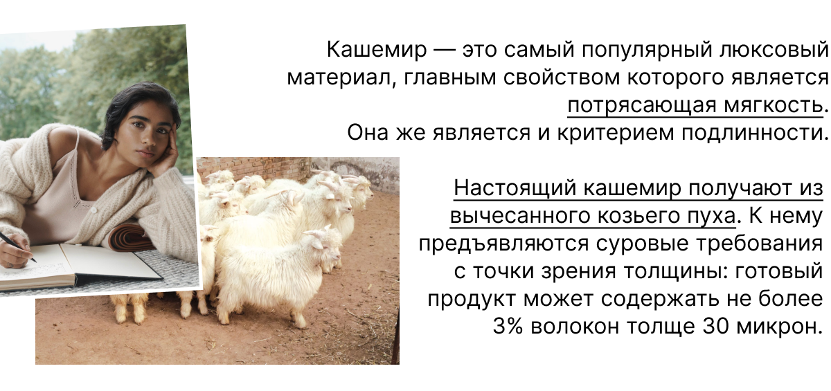Высокая цена вещей из категории «люкс» не всегда объясняется одной только магией бренда. Иногда в нее входит высокая себестоимость сырья — шелка, кашемира, тончайшей шерсти.
