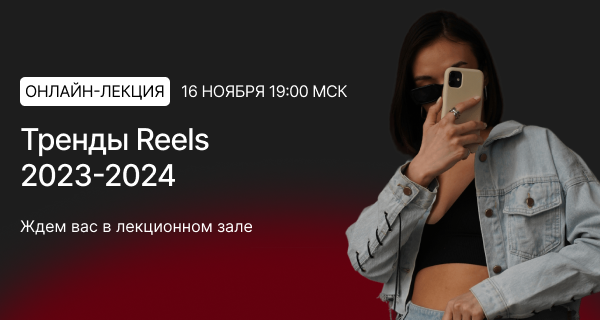 | Трансляция онлайн-лекции «Тренды Reels 2023-2024» начнется уже через 15 минут! Спикер уже ждет вас — присоединяйтесь! | | | | Каждому участнику лекции — скидка 10% на обучение в Fashion Factory School и подарки! | | | Участникам лекции дарим: - подорку приложений для дизайна ленты, Stories и рекламных баннеров