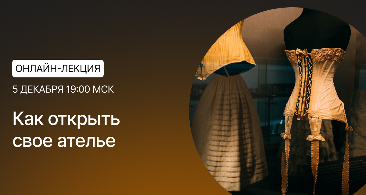 | Открыта регистрация на лекцию | | | Встречаемся 5 декабря в 19:00 по МСК: - Почему сейчас самое время открывать ателье