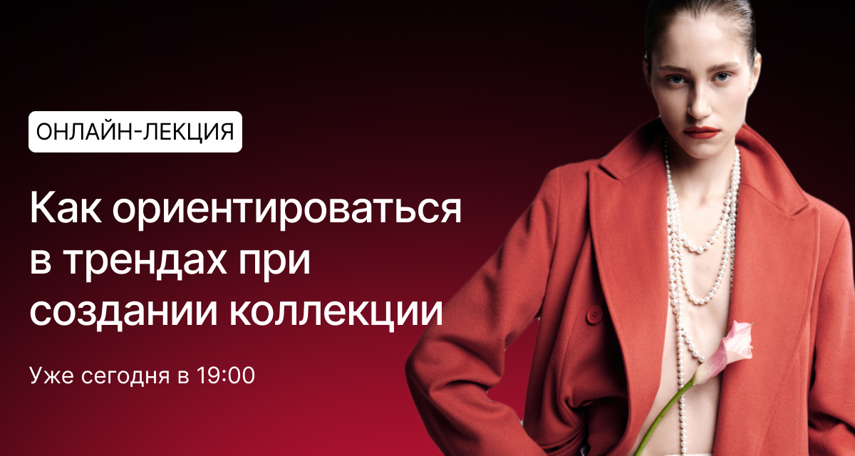 | Уже сегодня — онлайн-лекция «Как ориентироваться в трендах при создании коллекции». Встречаемся в 19:00 по МСК. | | | | Вместе с Анной Якимовой разберем: | | | - Как работать с трендами и прогнозами, чтобы увидеть коммерчески успешный ассортимент