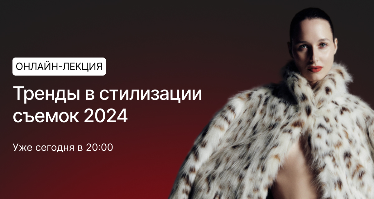 | Уже сегодня — онлайн-лекция «Тренды в стилизации съемок 2024». Встречаемся в 20:00 по МСК. | | | | Вместе с Ирой Фирсовой разберем: | | | - Основные слагаемые трендовой съемки